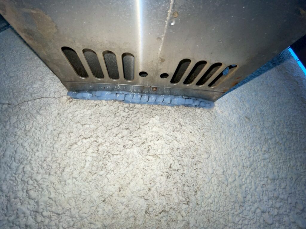 現地確認したところ、台所に侵入し様々物色した形跡があり周辺の入ってくるルートを探すと、キッチン台の下から出入りしていることわかりました。
