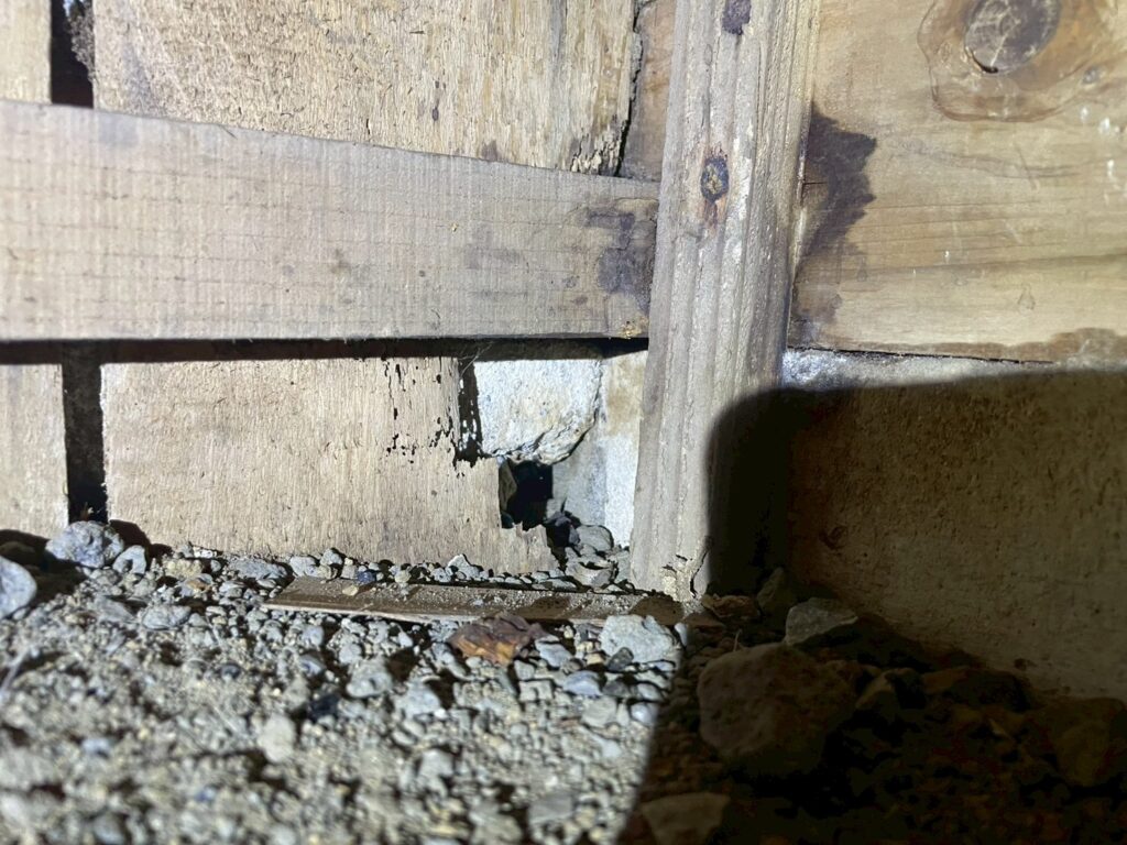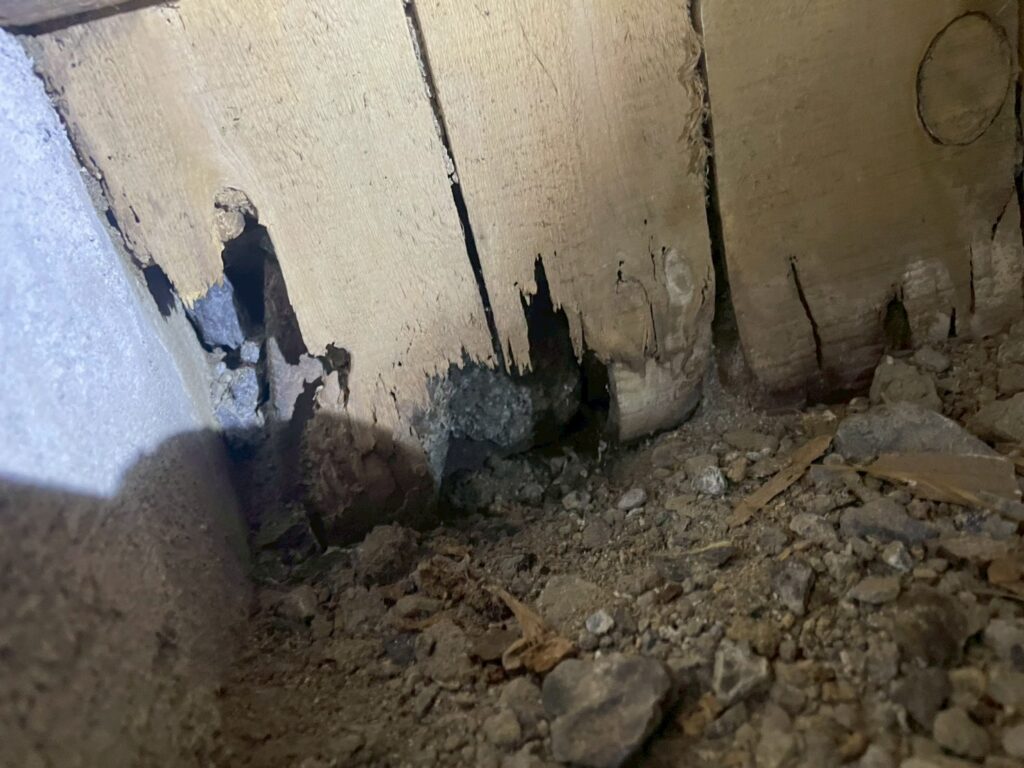 その後、床下に潜ると今度は玄関下と洗濯機下に怪しげな穴を発見!!