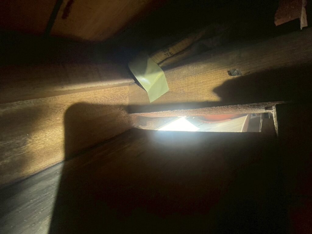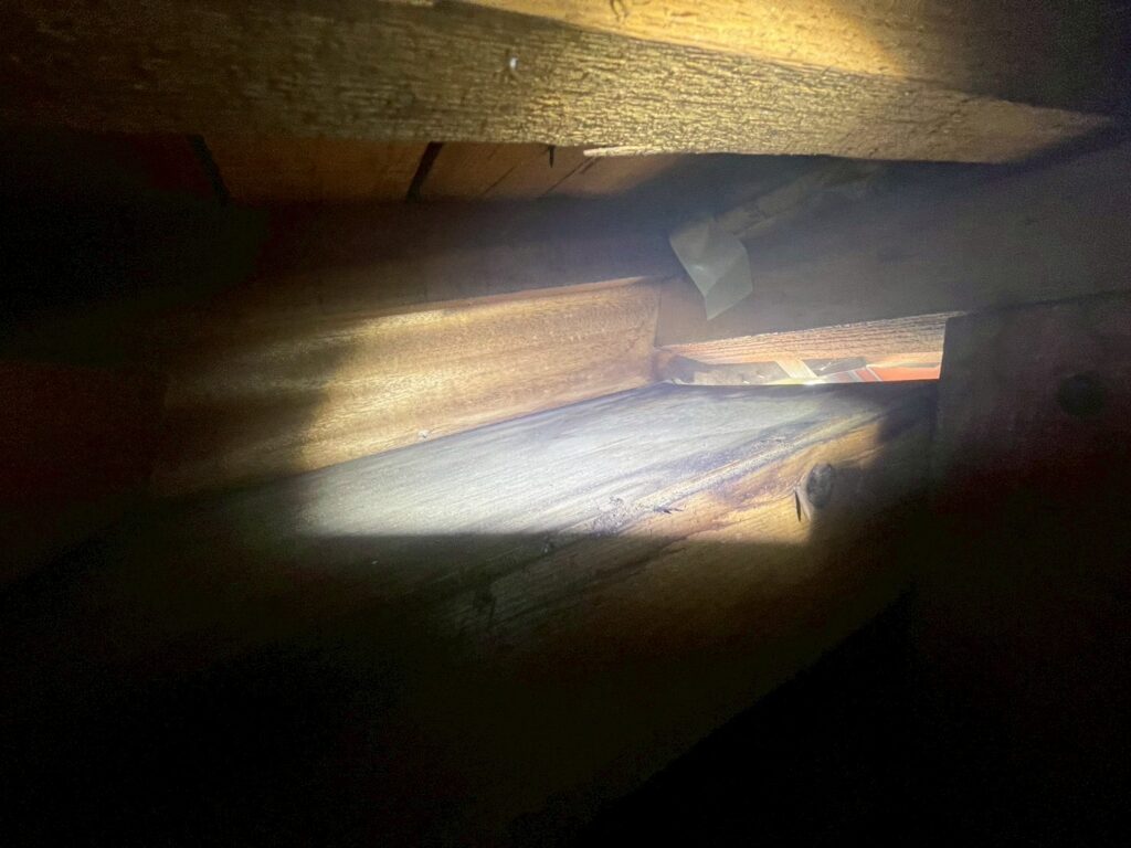 屋根裏あがるとしっかり口をあけた隙間がーーー。