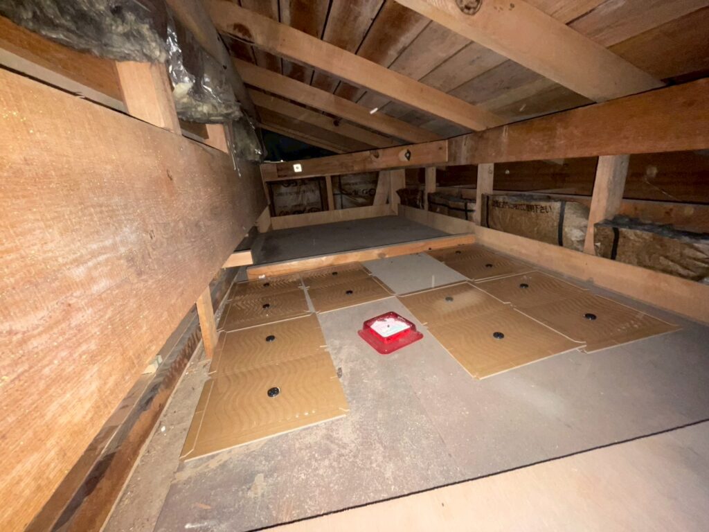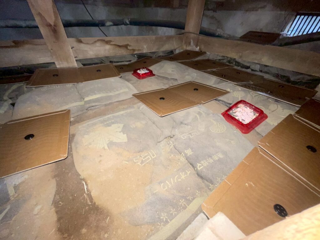 燻煙後、天井裏と床下に罠をセットします。